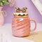 Glossy Ceramic Coffee Mug with Bow Lid | Cute Covered Tea Cup