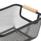 Rectangular Mesh Metal Storage Fruit Basket With Wood Handle