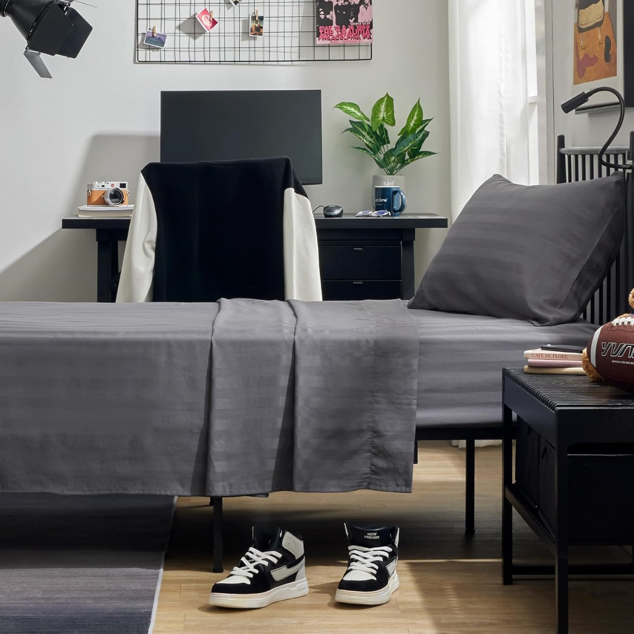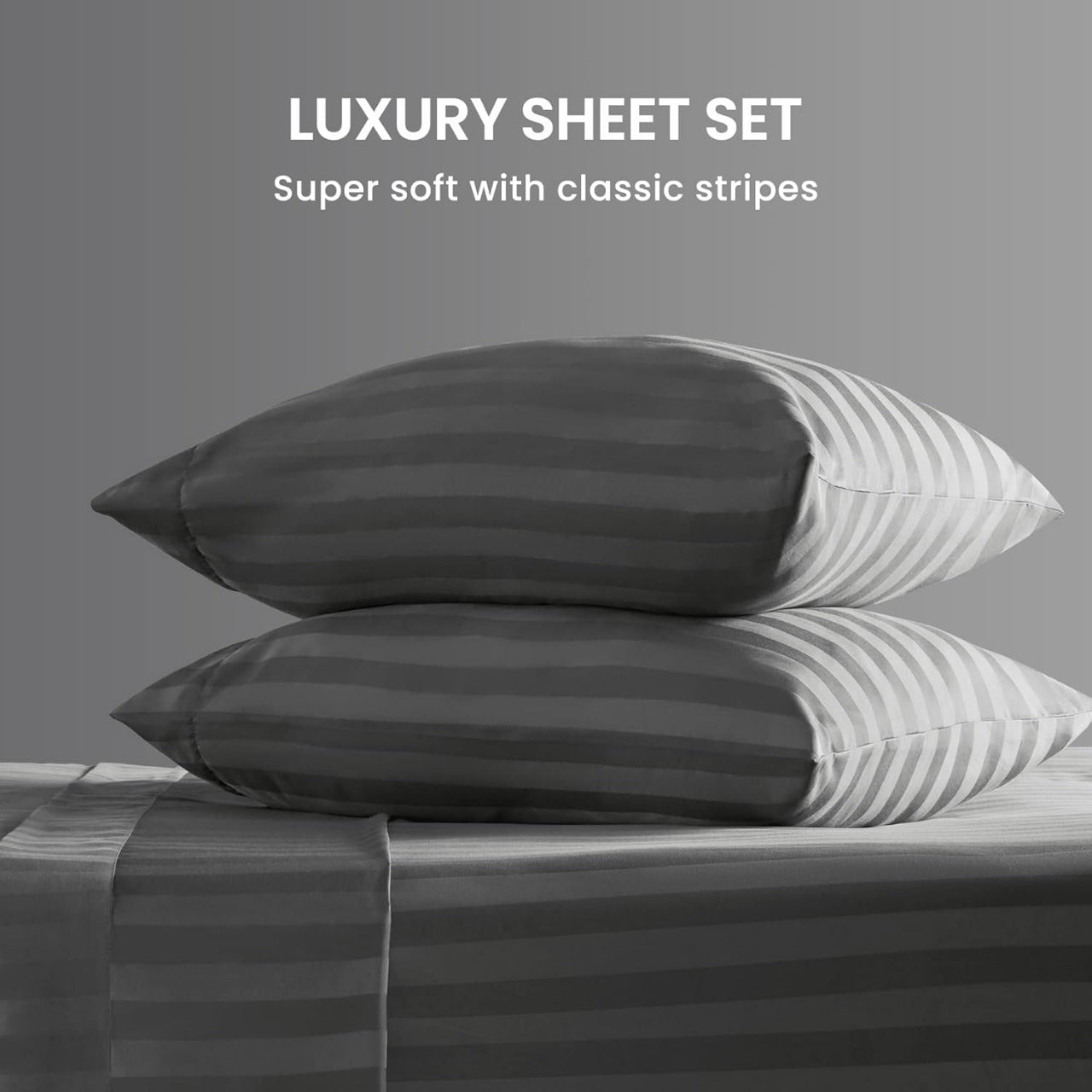 Striped Bedsheet Set - Grey T200 Cotton Satin