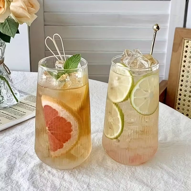 Add a touch of elegance to your drinkware collection with this Vertical Stripe Drinking Glass, designed with a modern ribbed texture that enhances grip and style. Perfect for iced coffee, lattes, smoothies, juices, mocktails, and everyday beverages, this heat-resistant mug is both practical and fashionable.