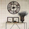 - تخلیقی قدیم دھاتی دیوار گھڑی، کھوکھلی ڈیزائن، شیشے کے لینس نہیں. آسانی سے پڑھنے کے لیے سیاہ فریموں کے برعکس بڑے سنہری رومن ہندسے۔
