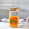 شیشے کے تنکے اور ہوا بند لکڑی کے ڈھکن کے ساتھ شفاف اسکوائر گلاس ٹمبلر | پینے کا سامان
