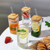 شفاف اسکوائر گلاس ٹمبلر گلاس اسٹرا اور ہوا بند بانس کے ڈھکن کے ساتھ پینے کا گلاس