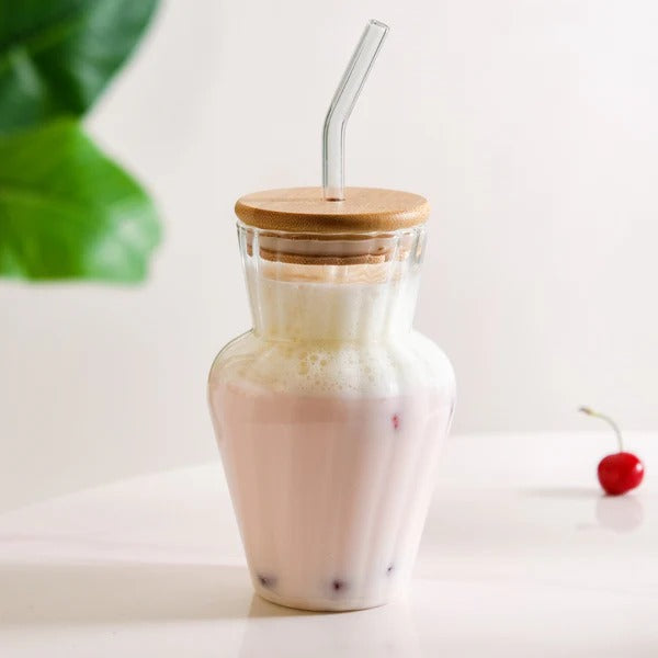 Stay refreshed with the TropiCool Glass Tumbler (450ml), designed with a natural bamboo lid and reusable straw for eco-friendly, stylish sipping. Perfect for juices, iced coffee, smoothies, mocktails, milkshakes, and water, this tumbler combines practicality with modern design.